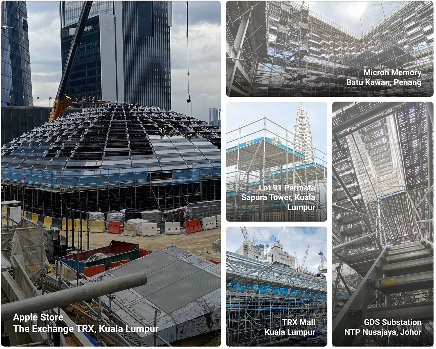 Trusted by leading local and multinational organisations, Dscaff is a preferred scaffolding contractor delivering safe, reliable, and high-performance scaffolding solutions for complex projects across Malaysia and the region. Backed by one of the largest scaffolding inventories in the market, we respond swiftly to both planned works and urgent site requirements.